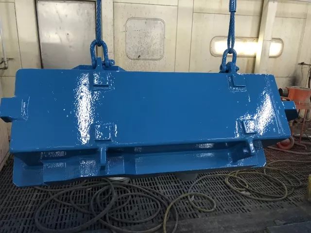 首批次無溶劑涂料在振華南通傳動公司的齒輪箱上進行了施工試點,施工參數(shù)設定為底漆80μm,中漆150μm,面漆80μm,在不改變生產(chǎn)線現(xiàn)有單組份泵設備參數(shù)的情況下,順利的完成了三道涂料的施工。涂料施工混合壽命超過2小時。同時,以其無刺激性涂料施工味道的優(yōu)勢獲得了施工工人的好評和認可。整體重防腐涂層體系已經(jīng)通過實驗室1500小時以上鹽霧測試和150天以上的耐化學品測試,整體性能優(yōu)異。