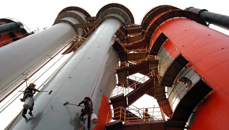 首先,因為大部份防腐涂料都是易燃、有毒、易爆物品,所以在施工過程中一定要注意做好安全防范工作,禁止在噴涂料時抽煙等危險行為,帶上防護面罩。