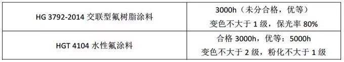 雖然不同標(biāo)準(zhǔn)的耐候指標(biāo)高低上有所差異,但是還是可以看出氟碳漆在實(shí)際的規(guī)范要求中的耐候要求是數(shù)倍于多彩涂料和合成樹(shù)脂乳液外墻涂料。一般我們涂料行業(yè)內(nèi)對(duì)于氙燈老化的一般認(rèn)知是,雖然與戶外耐候時(shí)間沒(méi)有直接的線性關(guān)系,但是大約可以認(rèn)為1000h的氙燈老化對(duì)應(yīng)的戶外(普通大氣,即C3及以下環(huán)境)耐候性大約可以維護(hù)10年,目前我們的大氣環(huán)境一般都會(huì)比C3更加惡劣,特別目前多數(shù)發(fā)達(dá)地區(qū)多為沿海城市的情況下,1000h加速老化對(duì)應(yīng)的戶外實(shí)際時(shí)間打折很嚴(yán)重,一般來(lái)說(shuō)沒(méi)有2500h以上的耐老化數(shù)據(jù)是很難達(dá)到使用20年以上的要求的。
