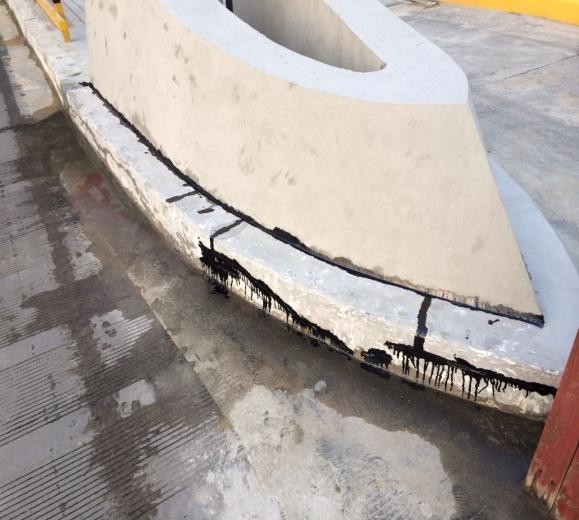第二道工序:將局部破損較嚴重區域采用聚合物砂漿修補平整。先在大的缺陷、裂縫處涂上均勻、足夠的底涂,等其干燥之后用聚合物砂漿將其修補完整。